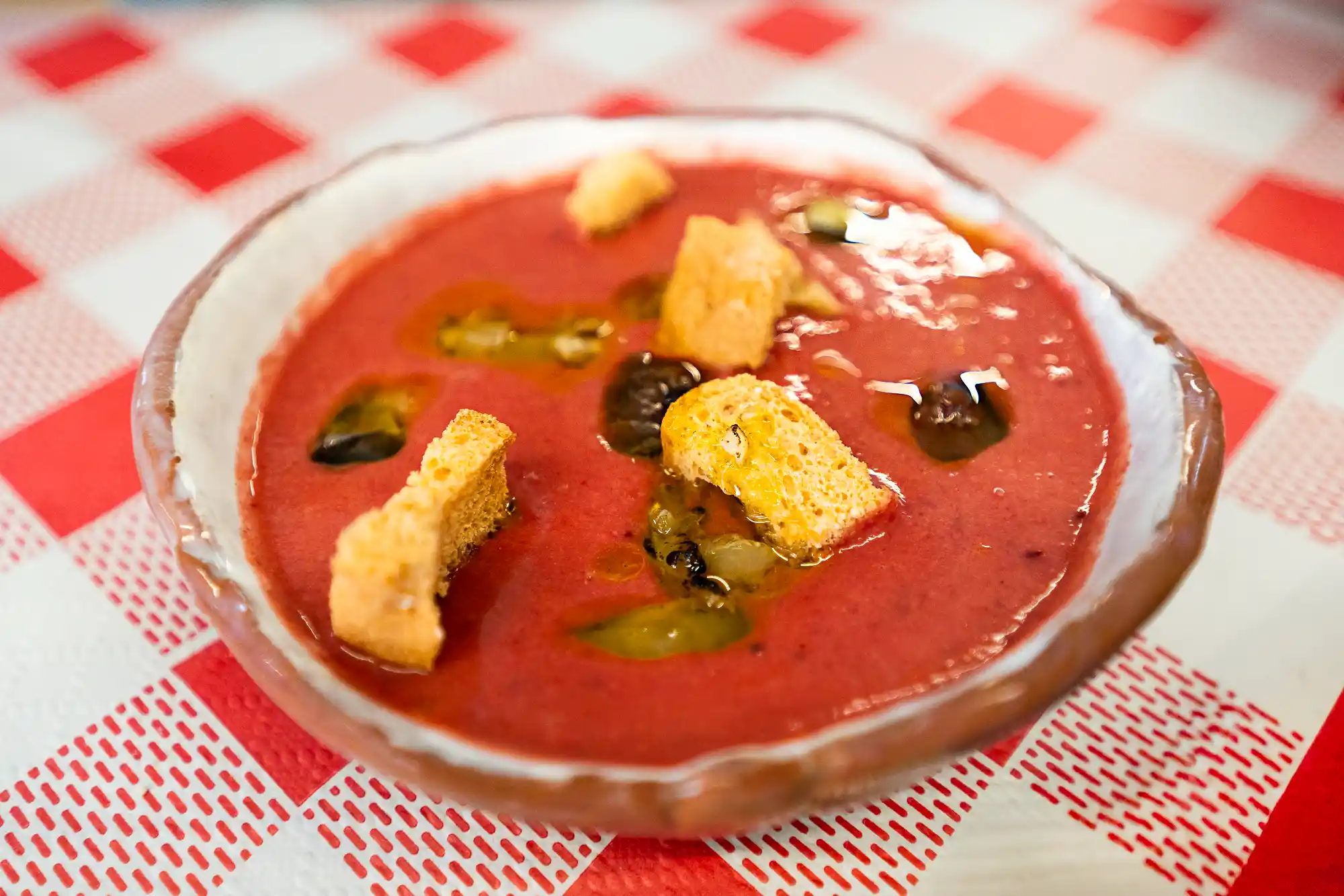 There’s a definite farm-vibe to the interior of La Cantina, with fresh vegetables, herbs, and bread on display everywhere you look. There’s also a lot of ceramics, which underlines the idea of bringing the huertas (fields) of Valencia into the city center. And the layout of the semi-open kitchen allows you to watch your food being made. It all kind of reminded me of visiting my grandma, who lived on a farm. I loved the scents and sounds of fresh cooking, while I watched her prepare a big family feast.